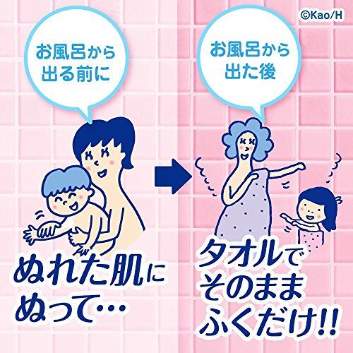 ぬれた肌にぬるだけ お風呂場でらくらくスキンケア完了 シアバター、ワセリン配合(保湿成分)のミルクが、水にとけて角層までたっぷり浸透。タオルでふいた後もうるおい長続き。