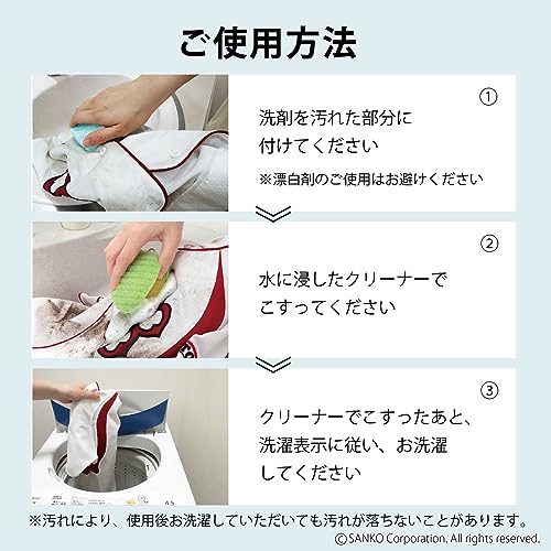 【使用方法】洗剤を落としたい汚れにつけた後、水に浸したブラシ(本品)でこすってください。その後、洗濯機の表示に従い洗濯してください。