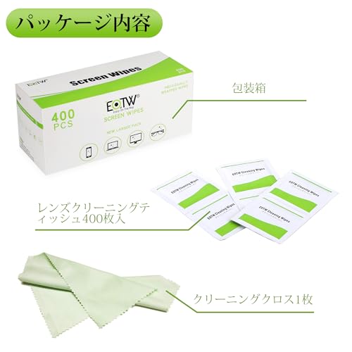 EOTW クリーニングティッシュ 個装 400枚入り テレビ液晶クリーナー スマホクリーナー 画面 帯電防止 液晶用 ウェットティッシュ メガネ拭き ウェットタイプ レンズ 眼鏡 カメラ PC 掃除