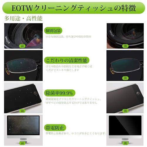 【適用対象】EOTWクリーニングティッシュは、すべての滑らかで高感度な表面と液晶画面の清掃に適しています。例:メガネ、スマホ、タブレット、ノートパソコン、パソコン、iPad、LED、テレビ、モニター、ディスプレイ、キーボード、レンズなど。
