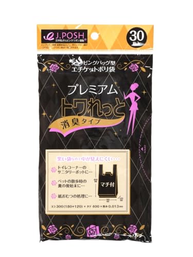 ジャパックス サニタリー袋 黒 横18cm+マチ12cm×縦40cm 厚み0.013mm 30枚 トワれっと 消臭袋 取っ手付き マチ付き 中身が見えない ポリ袋 SN04