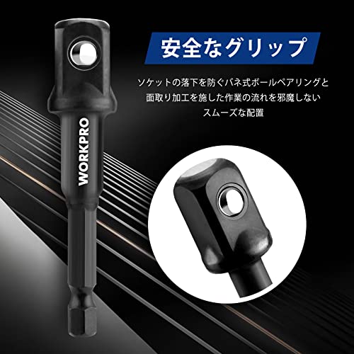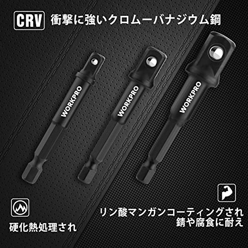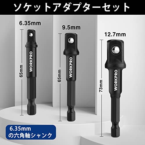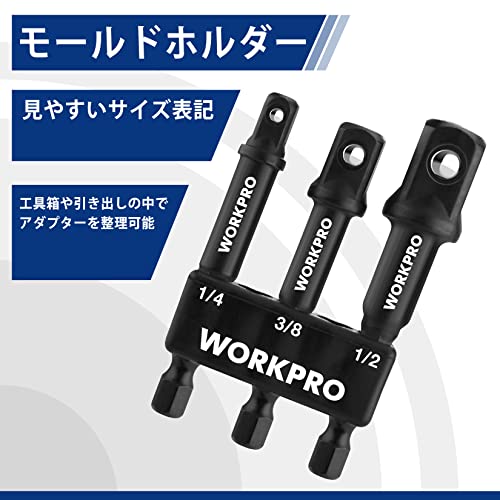 WORKPRO インパクトグレードソケットアダプターセット 3本組 延長ビット 差込角6.35mm 9.5mm 12.7mmドライブ 軸径6.35mm六角軸 電動ドリル用 熱処理済み 高強度 タイヤ交換 自動車修理 収納ホルダー付き