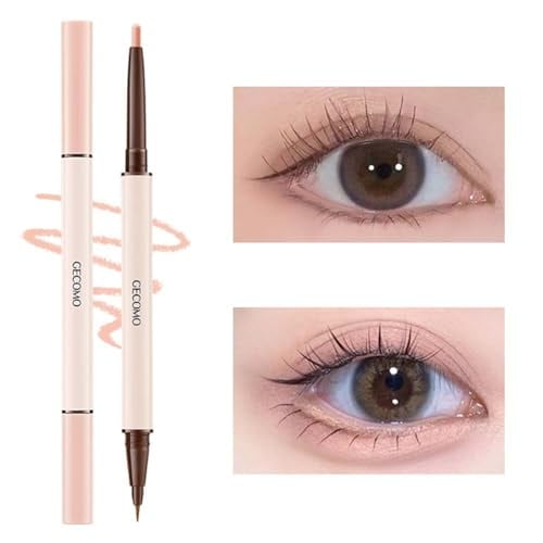 GECOMO【人気】二重芯アイライナー 涙袋ライナー ウォータープルーフペンシルアイライナー 【ペンシル & リキッド 2in1】マベニ 人気コスメ高密着 ダブルラインエキスパート 影用グレージュ ふたえを強調 リキッドアイライナー 描くふたえアイライナー(01# ホワイトゴールド)