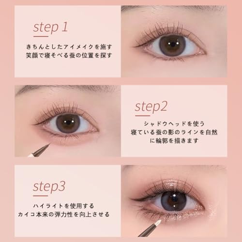 【2 in 1 アイライナー】2 in 1 涙袋にもアイライナーにもなり、 グラデーションメイクも可能 0.01mm極細リキッドアイライナーヘッドで + 2.0mmジェルアイライナーヘッド。しなやかな筆運びで安定した極細ラインを描けるから、思い通りにアイラインが引きやすいです。目尻でも目頭でも目の際でも狙った通りになめらかな自分なりの魅力を放つアイラインが描けます。タレ目でも跳ね上げでもアイラインはもう怖くありません初心者でもチョーイージー