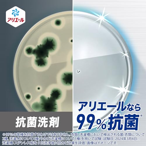 10%濃縮同じ洗濯洗剤量で今までより+5枚洗える*2023年アリエール超抗菌プレミアムシリーズ比。同じ洗濯水量設定の場合。