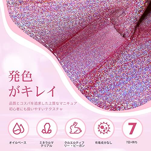BORN PRETTY ユニコーンマニキュア キラキララメポリッシュ 微粒子ラメ ホロ 眩しい虹色 レーザーグリッター マニキュア ネイルポリッシュ ピンク