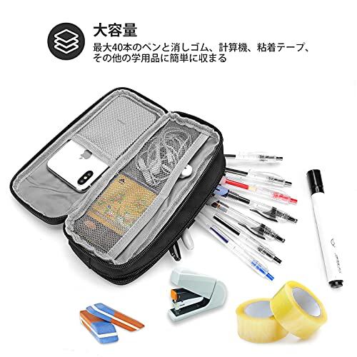ProCase ペンケース 大容量 筆箱 シンプル 機能的 学生用 社会人用 多機能 ?ブラック