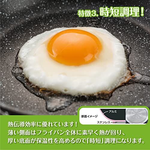 特長アルミ鋼材の底面を厚く、サイド面を薄く加工するスピン製法を採用することで、熱効率を高めています。