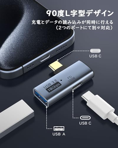 Type-C 変換アダプタ USB-A OTGアダプター タイプC+Aデュアルポート 分岐ポート PD100W急速充電 10Gbps高速データ転送 USB3.2 フラッシュメモリー/ハードディスク/カードリーダ/キーボード/イヤホン/コントローラーなどOTG機能対応 iPhone17/16/15/MacBookPro/PadPro/Switch2などTypeCデバイスに対応 Gray