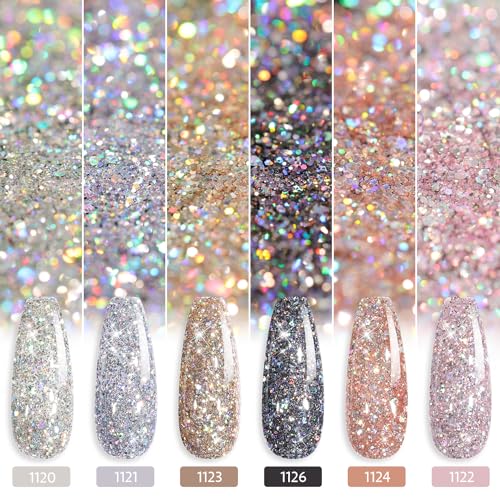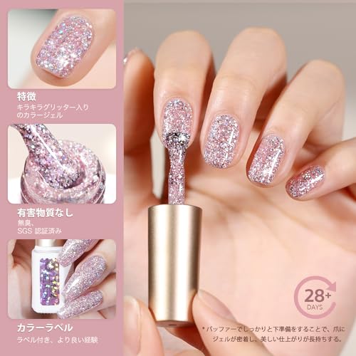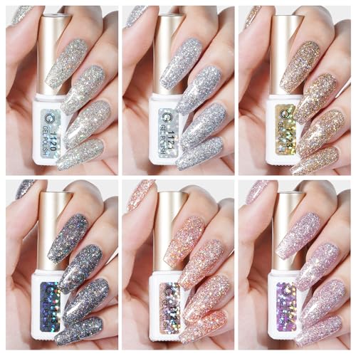 GAOY ジェルネイル カラージェルセット グリッター シャイニング ネイル ブラック シルバー ピンク 6色セット UV・LED対応 ポリッシュタイプ セルフネイル