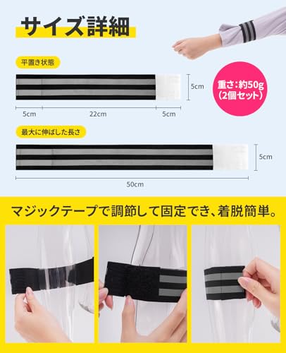 【夜間の安全性アップ】ドライバーは暗闇で歩いている人を見つけにくいので、一般的に、自転車での通勤・通学時や、お子さんが夜間の塾に通う際には十分注意する。蛍光バンドはライトを反射することで、自分の存在を車や他者に知らせ、安全を守る。