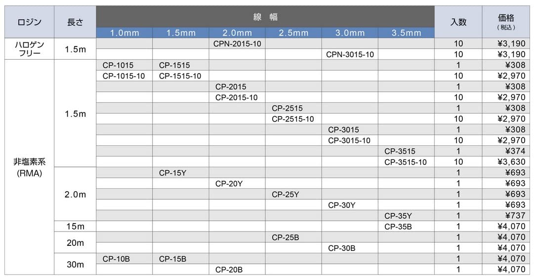 太洋電機産業(goot) はんだ吸取線 幅2.5㎜ 長1.5m CP-2515 日本製