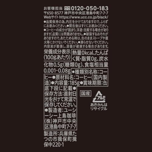 ブラック無糖 BLACK UCC 缶コーヒー185ml×30本