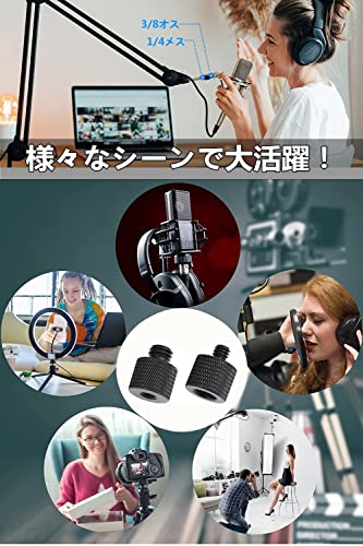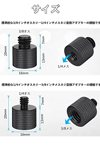 【適用範囲】標準的な1/4インチオスネジ→3/8インチメスネジ変換アダプターと3/8インチオスネジ→1/4インチメスネジ変換アダプターの規格です。組み合わせて使用でき、1/4"と3/8"の間の自由変換を実現しました。三脚/一脚取付ネジ、自撮り棒、カメラフラッシュライト、雲台などの撮影用機材,撮影スタジオの専門機材も対応できます。