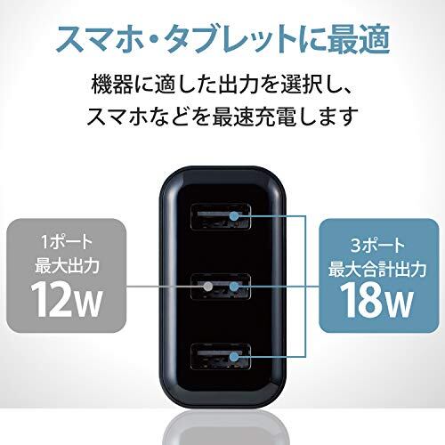 エレコム(ELECOM) USB コンセント 充電器 合計18W Type-A×3 【 iPhone (iPhone13シリーズ対応) / Android/タブレット 対応 】 ブラック MPA-ACU12BK