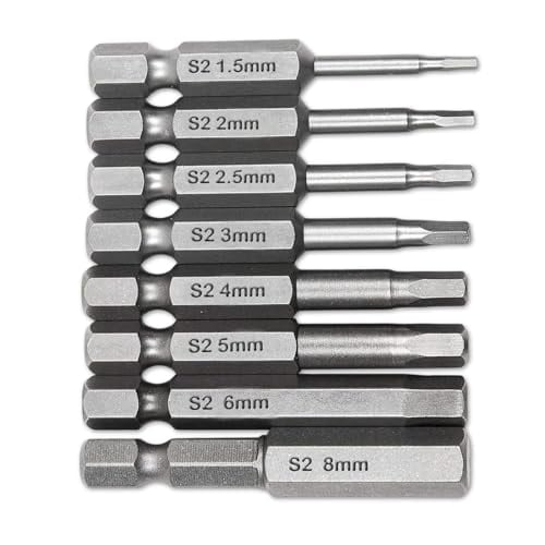 六角レンチビット 精密ドライバーセット 6.35mm 磁気吸着 ヘキサゴンビット 50mm長 H1.5-H8 電動ドライバー ビット工具 8本入り
