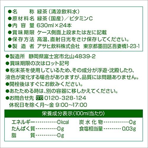 アサヒ飲料 「アサヒ 緑茶」 ラベルレスボトル 630ml×24本