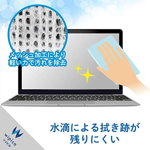 三菱ケミカルの超極細分割繊維をメッシュ状に加工した不織布で、力を入れずに軽く拭くだけで指紋やホコリなどの汚れをしっかり除去します。