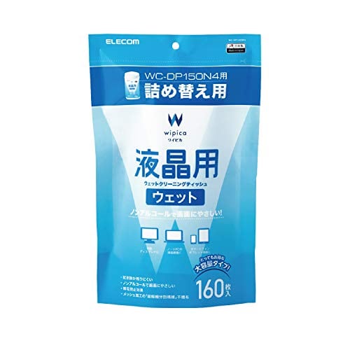 エレコム ウェットティッシュ 液晶用 クリーナー 160枚入り つめかえ用 液晶画面にやさしいノンアルコールタイプ 日本製 WC-DP160SP4
