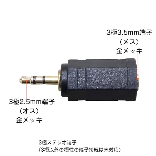 3.5ミリ 3極ステレオミニプラグを2.5ミリ 3極ステレオ超ミニプラグに変換する特殊アダプタです。