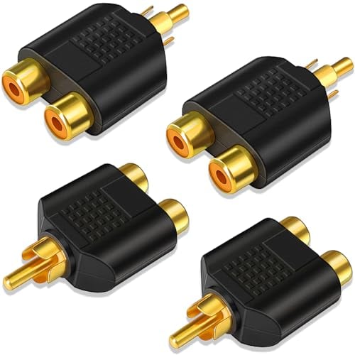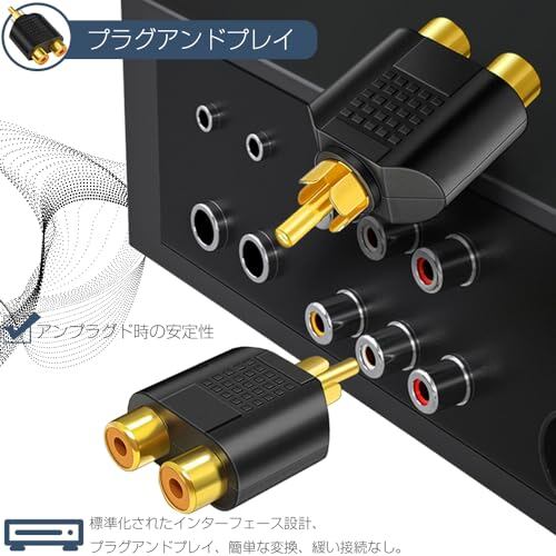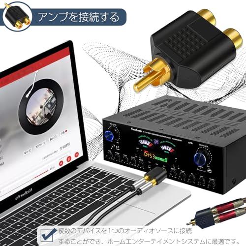RCA 分配 アダプター ビデオ オーディオ 2分岐アダプター 変換プラグ アンプ スピーカー モニターなど対応 ピン端子 プラグアンドプレイ RCAオーディオケーブル 分配器 RCAプラグ(オス) RCAプラグ(メス) 4個セット