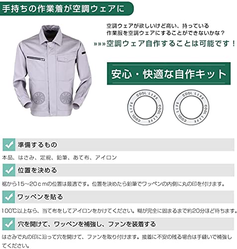 作業服 自作キット ワッペン 2枚セット 空調ファン穴加工 互換用 熱中症対策 あらゆる空調ファンを取り付けられる