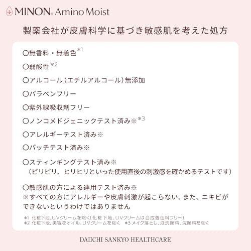 【ミノンから生まれたフェイスケア「ミノン アミノモイスト」】敏感肌を研究し続けた製薬会社がつくる独自の処方で「やさしさ」×「美しさ」を実現しました。バリア機能が低下しがちな肌を守りながら洗い、うるおいで満たして、すこやかに美しく保ちます。