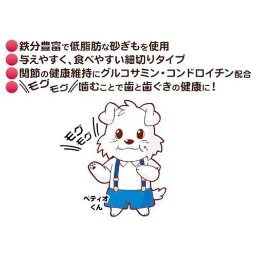シニア犬のためのやわらか砂ぎもガム与えやすく、食べやすい細切り形状に仕上げました。関節の健康維持にグルコサミン・コンドロイチン配合。