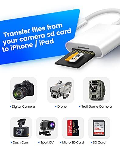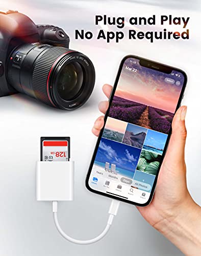 iPhone/iPad用SDカードリーダー、デュアルスロット付きマイクロSDカードリーダー、メモリカードリーダーアダプター、アプリ不要、プラグアンドプレイ