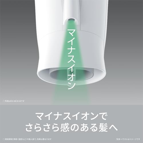 外付けマイナスイオンで、マイナスイオンに含まれる水分を熱から守り、髪にしっかり届いて、さらさらな髪へ(使用環境(季節・温度など)や個人差で、効果は異なります。)。