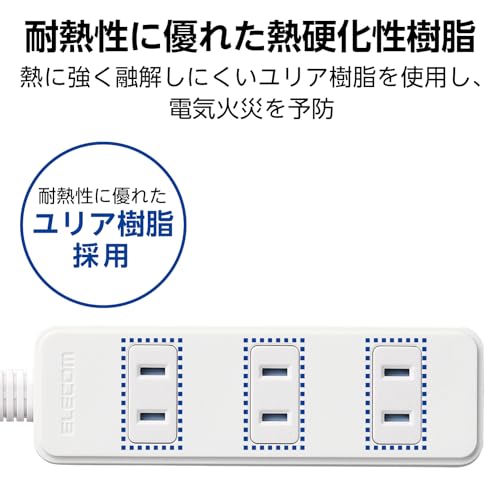 差込口には耐熱性に優れたユリア樹脂を使用しており、万一の発熱の際にも融解しにくく、電気火災の防止に有効です。