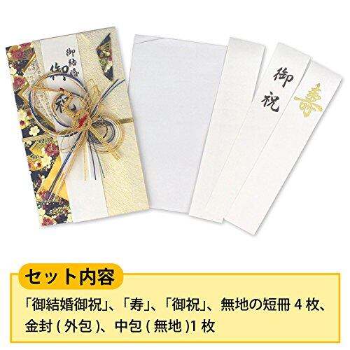 【セット内容】「御結婚御祝」、「寿」、「御祝」、無地の短冊4枚、金封(外包)、中包(無地)1枚