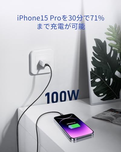 【100W高速充電】このUSB CtoC ケーブルはUSB PD技術に対応し、最大100W/5Aの高出力で安定して高速充電を実現できます。100W 87W 65W 61W 45W 30W 18Wの電力供給PD急速充電をサポートします。
