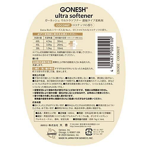 GONESH(ガーネッシュ) ウルトラソフナー(柔軟剤) ココナッツ (ココナッツの香り)600ml 98×60×223mm