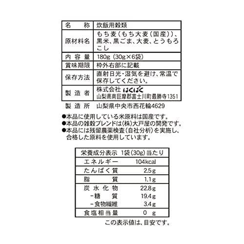原材料:大麦、黒米、とうもろこし、黒ごま、白ごま