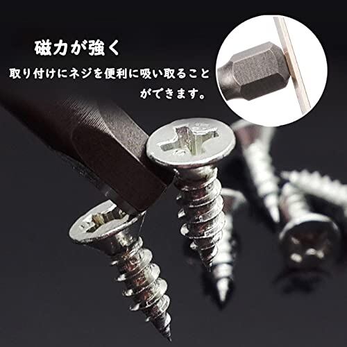 バッチヘッドには強力な磁石が付いているため、取り付け中にネジを吸いやすくすることができる、手扱いは簡単で、速い作業します。 電動ドライバー、手動ドライバー、電動ドリル、空気圧ドリルなどに適しています。 六角穴付ボルト、六角穴付き止めねじ固定使用されます。6角レンチビットは、DIYや修理作業、組み立て作業など、様々な場面で使用されています。