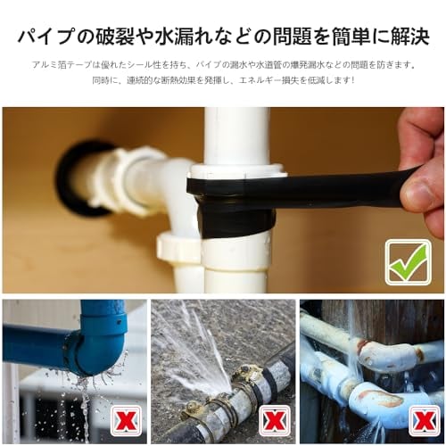 【取り付け簡単】柔らかい厚手のアルミ箔なのでハサミ等切断工具が無くても、手でちぎる事も可能で施工性良好です。どこにでも貼り付けられ、アルミ箔粘着テープは柔軟性に優れ、巻き付け作業や打ち抜き加工にも適します。