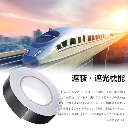 【強力なシールド特性】黒色アルミ箔テープは強力なシールド特性を持ち、一般的に高速鉄道機器のシールドに使用されるほか、電子ディスプレイのベゼル、精密電子製品、コンピューター、電線、ケーブルなどにも使用され、電磁波の干渉を遮断します。電磁波などの電波シールドに、キッチンのすき間、金属屋根、外壁など、屋内、屋外の防水、シールにも適します。