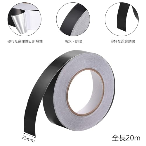 ADOFUN アルミテープ 黒 片面導電性アルミテープ【長さ20m ×幅さ25mm×厚さ0.05mm】 金属テープ 水漏補修 静電気対策 配管修理 キッチン 耐熱 防水 防火 強粘着