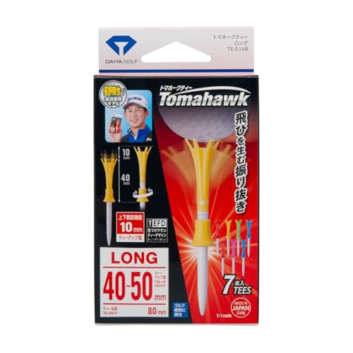 【星野陸也プロ使用ティー】ダイヤゴルフ(DAIYA GOLF) トマホークティー ロング 7本入 高さ調節可能 飛距離アップ 高耐久 折れにくい 見つけやすい ゴルフ規則適合 日本製 ティーアップ高40~50mm TE-516 B カップ部カラー