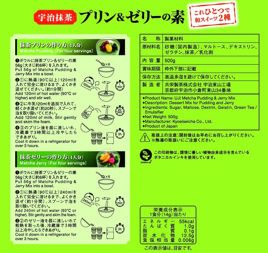 森半 宇治抹茶プリン&ゼリーの素 500g