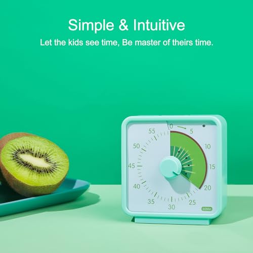 Conchstar 60分 ビジュアルタイマー 子供用 フルーツパターンデザイン ビジュアルカウントダウンタイマー 教室、オフィス、キッチン、ポモドーロタイマー サイレント操作 (キウイ)