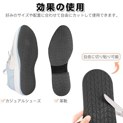 自由に切り貼り可能:好みのサイズと配置に応じて自由にカットして使用することができるため、革靴やスポーツシューズなどさまざまな種類の靴底に対応可能です。