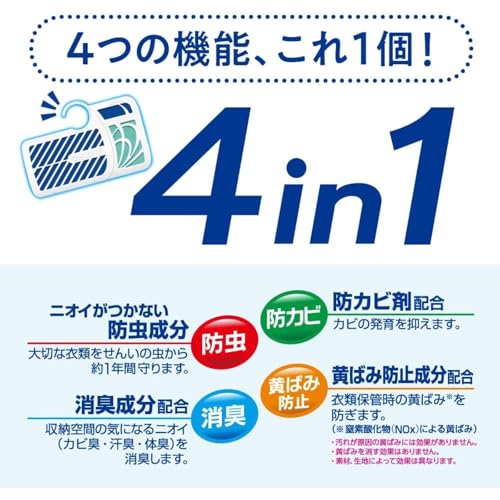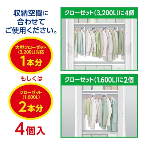 ミセスロイド 白元アース 衣類防虫剤 クローゼット用 4個入 無香 無臭 1年間有効 カバー内のダニよけ効果付き 虫除け 防カビ 消臭 黄ばみ防止