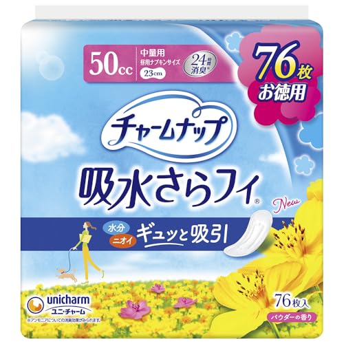 チャームナップ unicharm 吸水さらフィ 中量用 羽なし 50cc 23cm 76コ入(尿 吸収ナプキン 尿もれパッド ナプキンサイズ)【軽い尿もれの方】