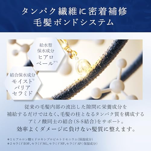 超高圧1浸透型ハイドロコラーゲン配合2の濃密泡で乾燥・パサつき髪を修復。 洗うたびにパサついた髪にうるおいを与え毛先までしっとりぷるぷる髪へ導く集中美容液シャンプー。