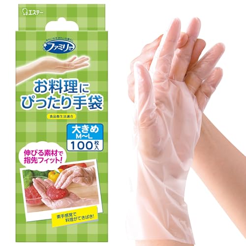 [ファミリー] お料理にぴったり 手袋 大きめ M~Lサイズ 半透明 100枚 内エンボス(凸凹) 加工 左右両用タイプ 調理 掃除 使い捨て (食品衛生法適合)