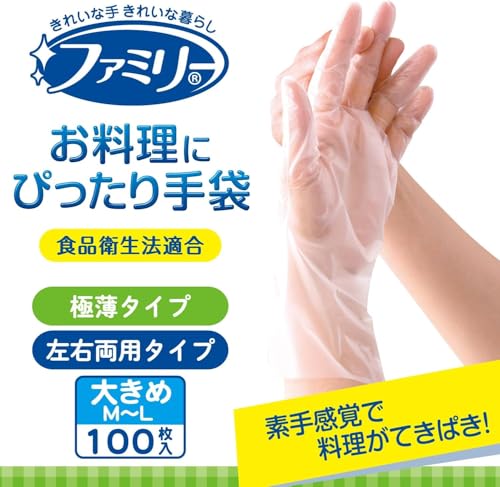 ![[ファミリー] お料理にぴったり 手袋 大きめ M~Lサイズ 半透明 100枚 内エンボス(凸凹) 加工 左右両用タイプ 調理 掃除 使い捨て (食品衛生法適合)](https://baseec-img-mng.akamaized.net/images/item/origin/25d224c0d20802fdd0a8e62bee5ab1cc.jpg?imformat=generic&q=90&im=Resize,width=1280,type=normal)