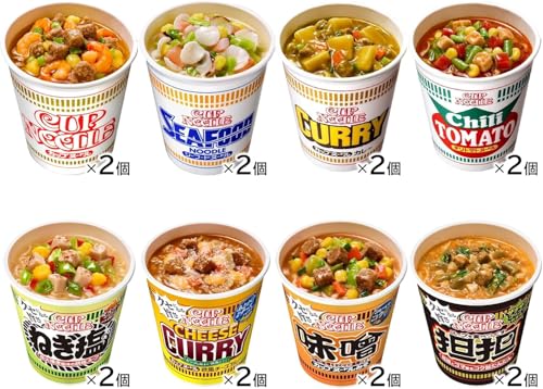 内容量:カップヌードル×2個。カップヌードル カレー×2個。カップヌードル シーフードヌードル×2個。カップヌードル チリトマトヌードル×2個。カップヌードル ねぎ塩×2個。カップヌードル 欧風チーズカレー×2個。カップヌードル 味噌×2個。カップヌードル にんにく豚骨×2個。計16食分。 商品切り替えのタイミングによって詰め合わせ内容の構成が若干異なる場合がございます。