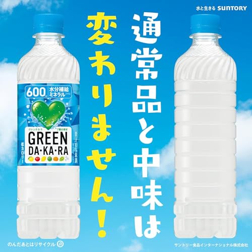 GREEN DA・KA・RA(グリーンダカラ) サントリー グリーンダカラ ラベルレス スポーツドリンク ペットボトル (冷凍兼用) (熱中症対策) 600ml ×24本 まとめ売り実施中